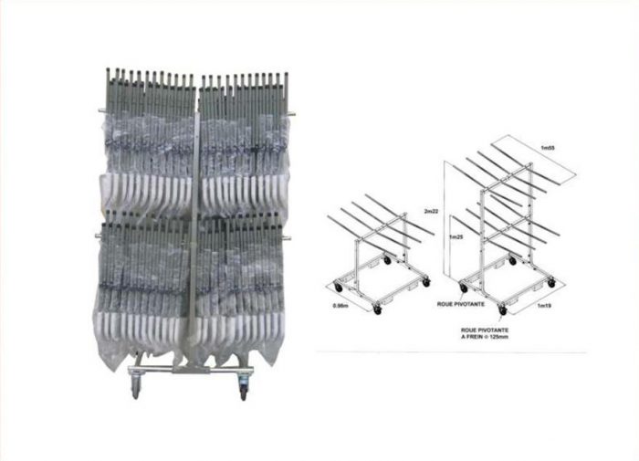 Chariot de chaises conçu pour le stockage et la manutention des chaises POLYMAC et HDPE.