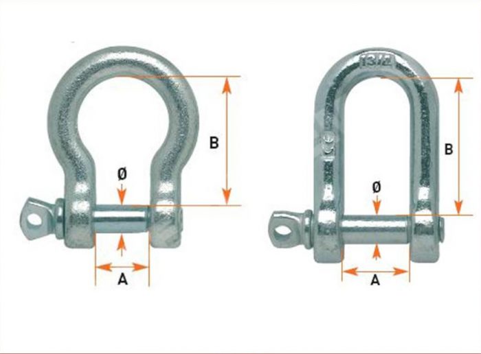 | Diamètre axe - CMU | 4mm – 45kg, 5mm – 70kg, 6mm – 100kg, 8mm – 250kg, 10mm – 400kg, 12mm – 630kg |